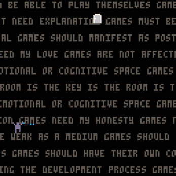 really happy to hear you trying to understand the symbol critters, because imo making players curious and confused is often only a thin line apart, and i haven’t quite learned how to deliberately balance that yet. i also really love your reflection on realizing you couldn’t truly get lost. that’s a very interesting way to put it.